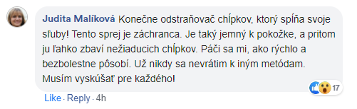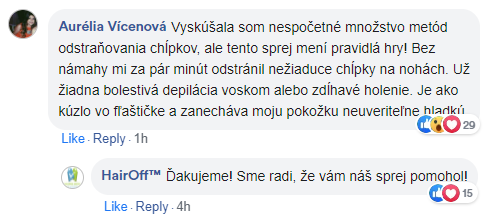 "Tento sprej na odstránenie chĺpkov sa ľahko používa. Úžasný, keď si musím len zotrieť chĺpky na rukách. Bezbolestný a bez podráždenia! Unavuje ma holenie, takže tento výrobok bol presne to, čo som potrebovala!"